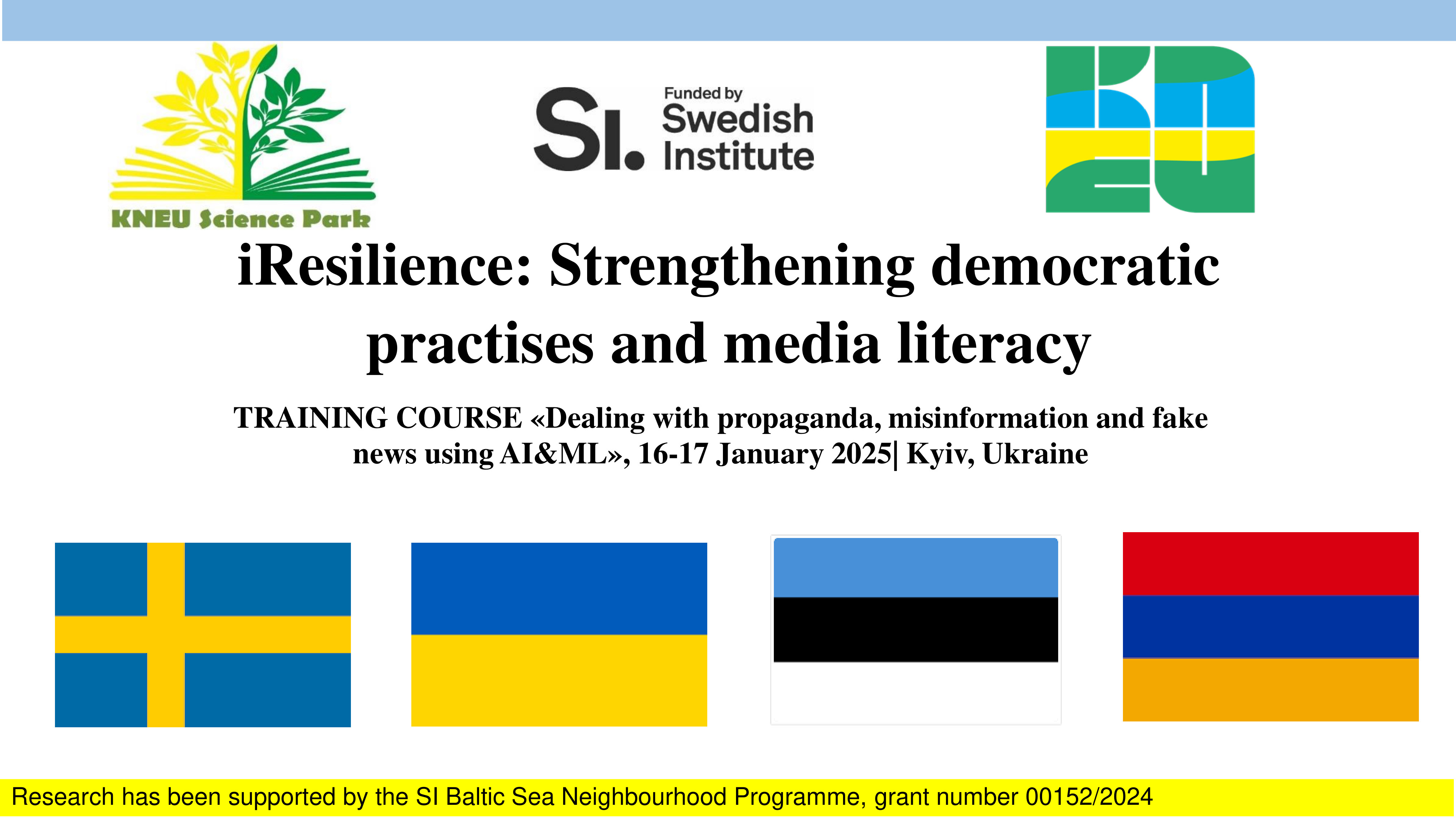 Захід проходив в рамках грантового проєкту 00152/2024 «iResilience: Strengtheningdemocraticpractisesandmedialiteracy», який фінансуєтьсяпрограмою SIBalticSeaNeighbourhoodProgramme