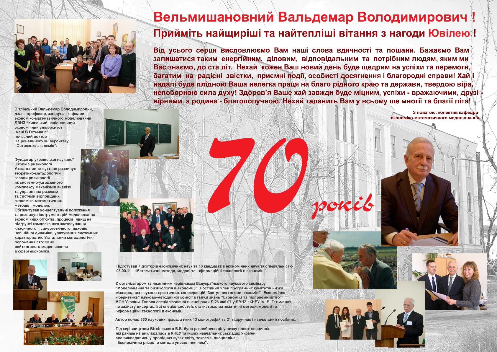 - Вітаємо завідувача кафедри, доктора економічних наук, професора Вітлінського Вальдемара Володимировича з ювілеєм!