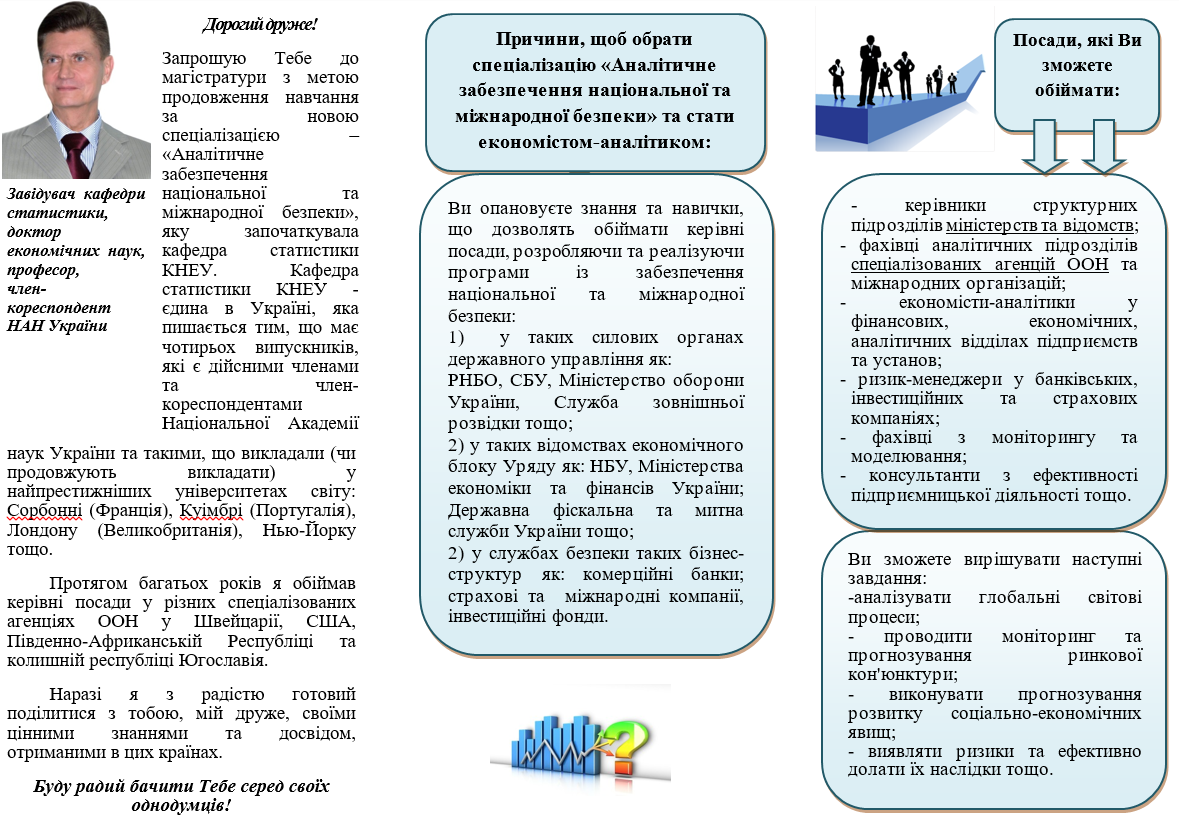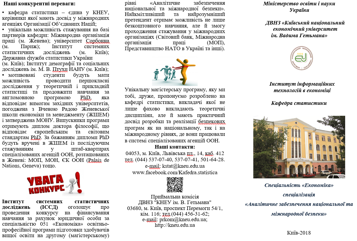 Унікальну магістерську програму, розроблено на кафедрі статистики, викладачі якої не лише фахово викладають теоретичні дисципліни, але й мають практичний досвід розробки та реалізації безпекових програм як на національному, так і на міжнародному рівнях, де вони працювали в системі спеціалізованих агенцій ООН.